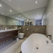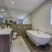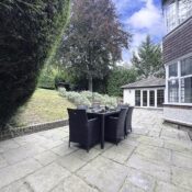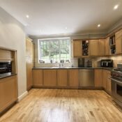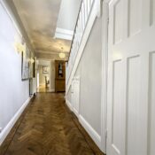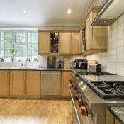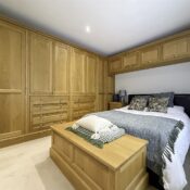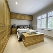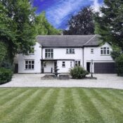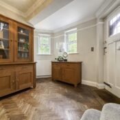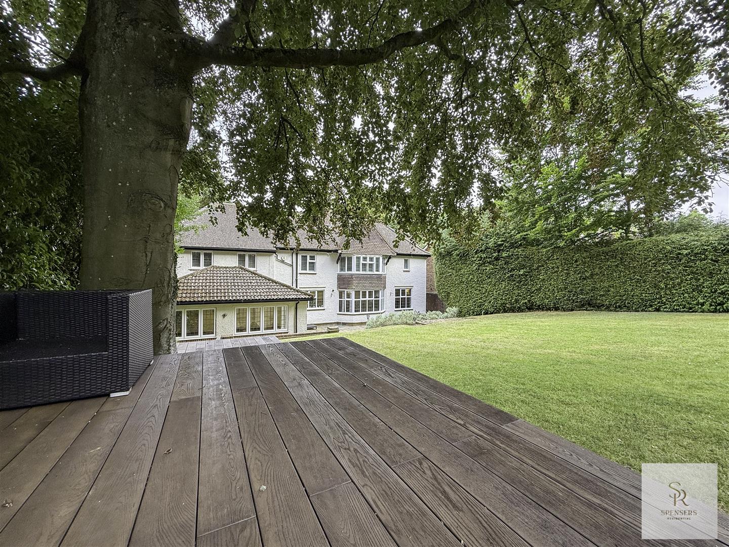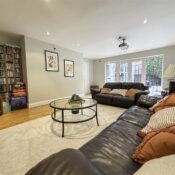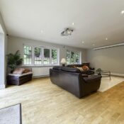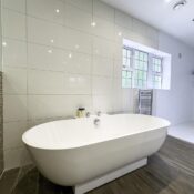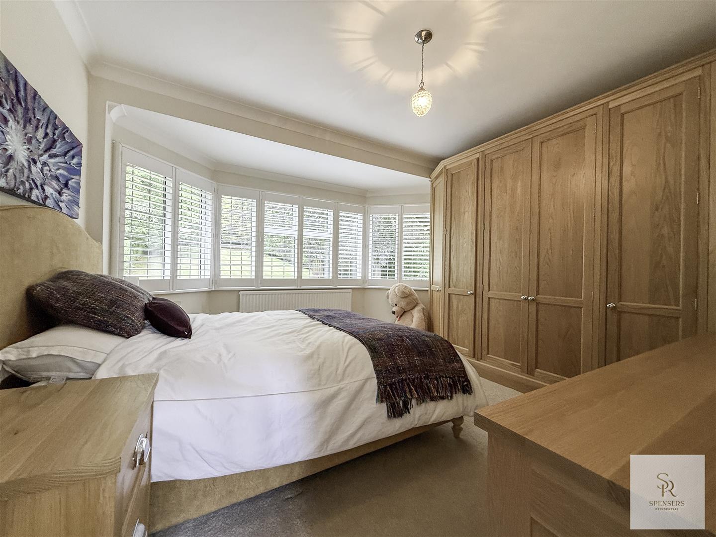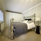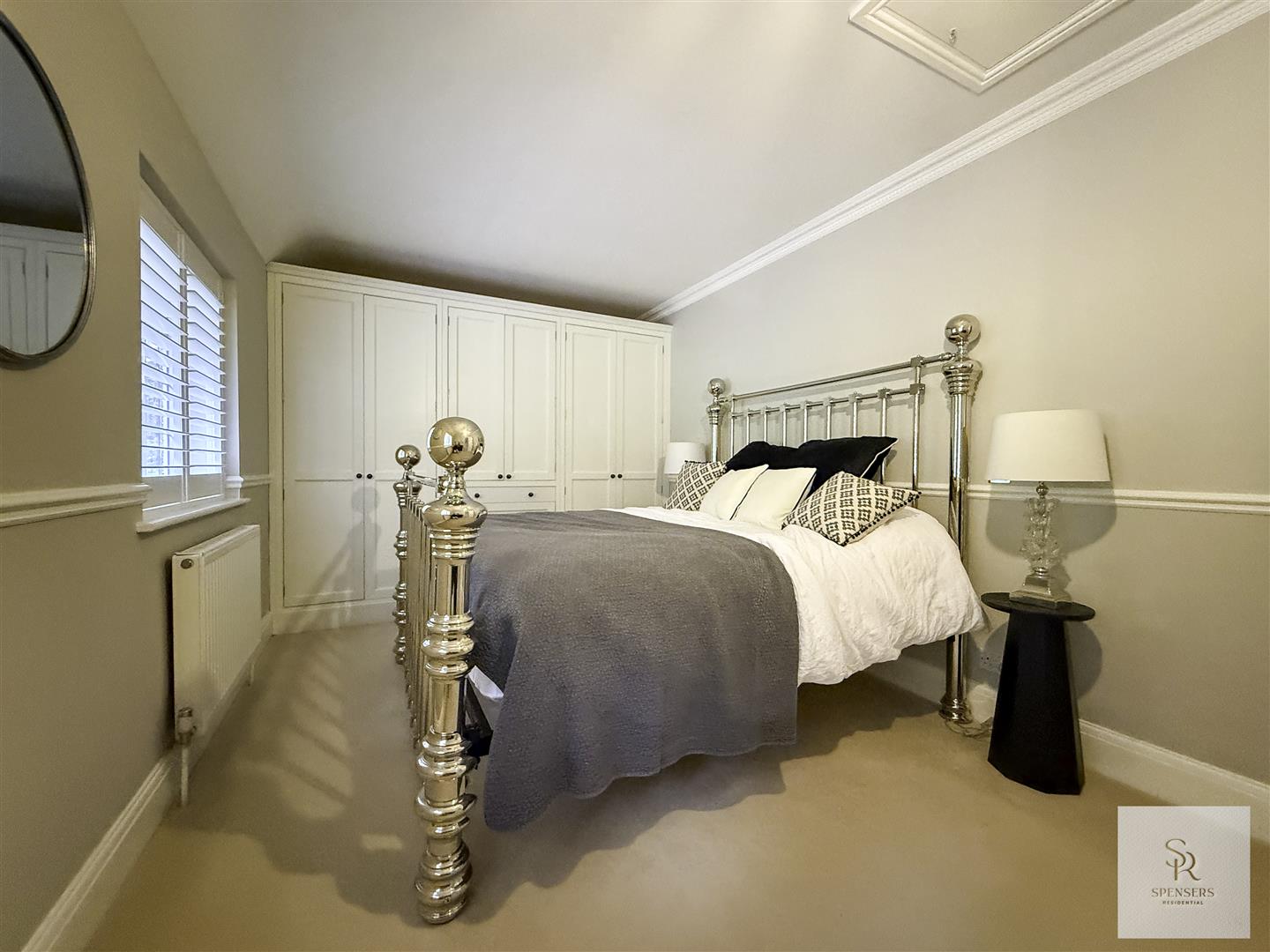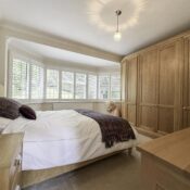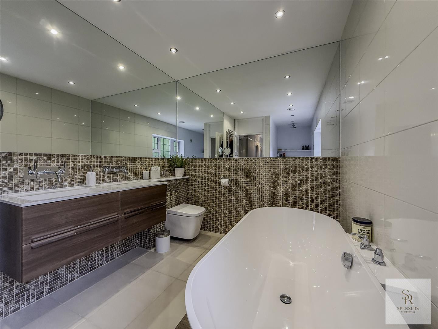 The first floor hosts five to six double bedrooms, including a generous principal suite with fitted wardrobes and a modern en suite shower room. The remaining bedrooms are served by a stylish family bathroom, featuring underfloor heating, a freestanding roll-top bath, and a large walk-in shower.