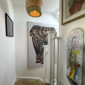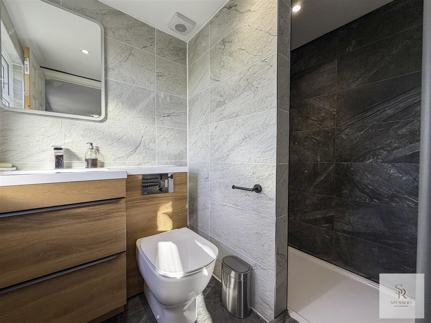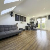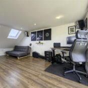 The first floor hosts three spacious double bedrooms alongside a well-appointed family bathroom, while the second floor extends the full length of the home. This impressive level boasts a large principal suite with innovative storage solutions, ensuite shower room, and a Juliet balcony overlooking the garden.
