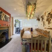 The ground floor enjoys an open-plan design, featuring a bright double reception room with excellent ceiling height and a charming bay window to the front, seamlessly flowing into a stunning full-width kitchen. Here you will find integrated appliances, extensive worktops, plentiful storage, and French doors opening directly onto the rear garden.