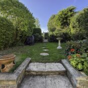 Externally, the property offers a private rear garden measuring in excess of 120ft, thoughtfully divided into three functional areas: a sun terrace leading from the kitchen, a dedicated alfresco dining and entertaining space, and an extensive lawn framed by mature boundaries, decorative borders, and established shrubs.