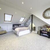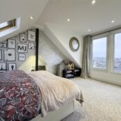 The first floor hosts three generous bedrooms, including one with bespoke fitted storage, all served by a sleek and modern family bathroom. The top floor unveils a show-stopping master suite, flooded with natural light, boasting far-reaching views and complemented by a sophisticated en-suite shower room.