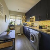 The contemporary kitchen has been finished to a high specification, complete with sleek cabinetry, quality work surfaces, and modern appliances. Every detail has been carefully curated to provide a culinary space that is as functional as it is stylish, ideal for everything from quick weekday meals to more elaborate dinner creations.