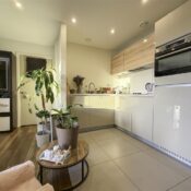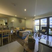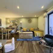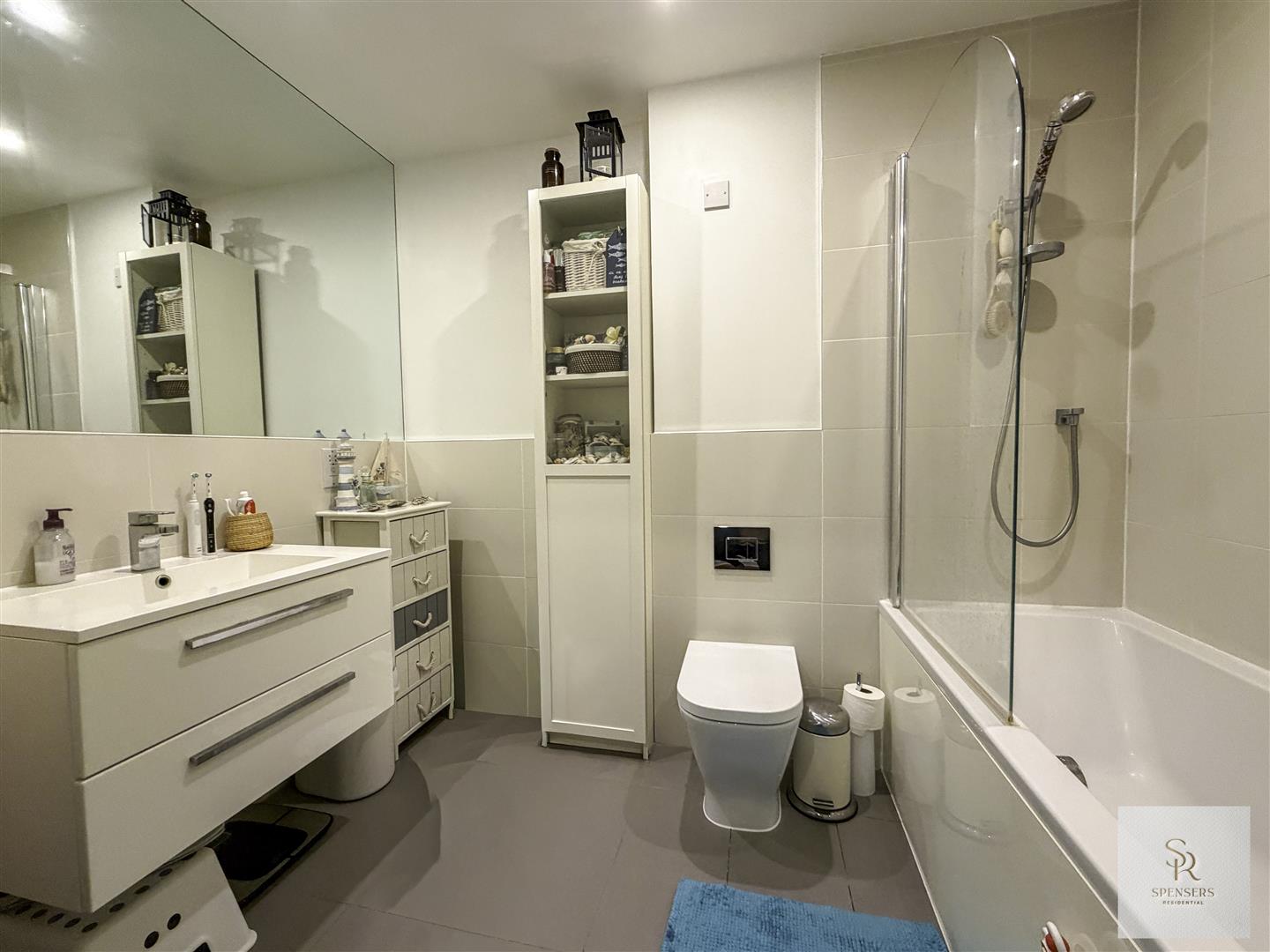 Designed with sophistication and comfort in mind, the property features an impressive open-plan living space complemented by a bespoke, contemporary kitchen. Premium integrated appliances, including a dishwasher, fridge-freezer, oven, hob, and extractor, ensure both style and convenience. The beautifully appointed three-piece bathroom boasts a panel-enclosed bath, sleek hand wash basin, low-level WC, heated towel rail, and a wall-mounted mirror, creating a serene environment for relaxation.